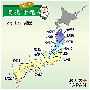 各地の開花予想日など詳しくは、お花見JAPAN内の「開花ズバリ予想」へ!